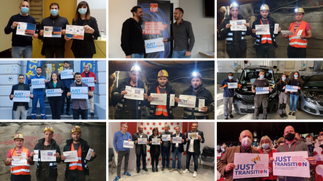 Inițiativa Just Transition, desfășurată sub sloganul: NIMIC DESPRE NOI, FĂRĂ NOI!, este un apel către instituțiile europene și către guverne pentru protejarea a 25 de milioane de lucrători din sectorul nostru din Europa, care se confruntă cu o potențială restructurare și pierdere a locurilor de muncă din cauza transformării ecologice a industriilor, ținând cont și de criza COVID-19, de influența digitalizării și de evoluția pieței.